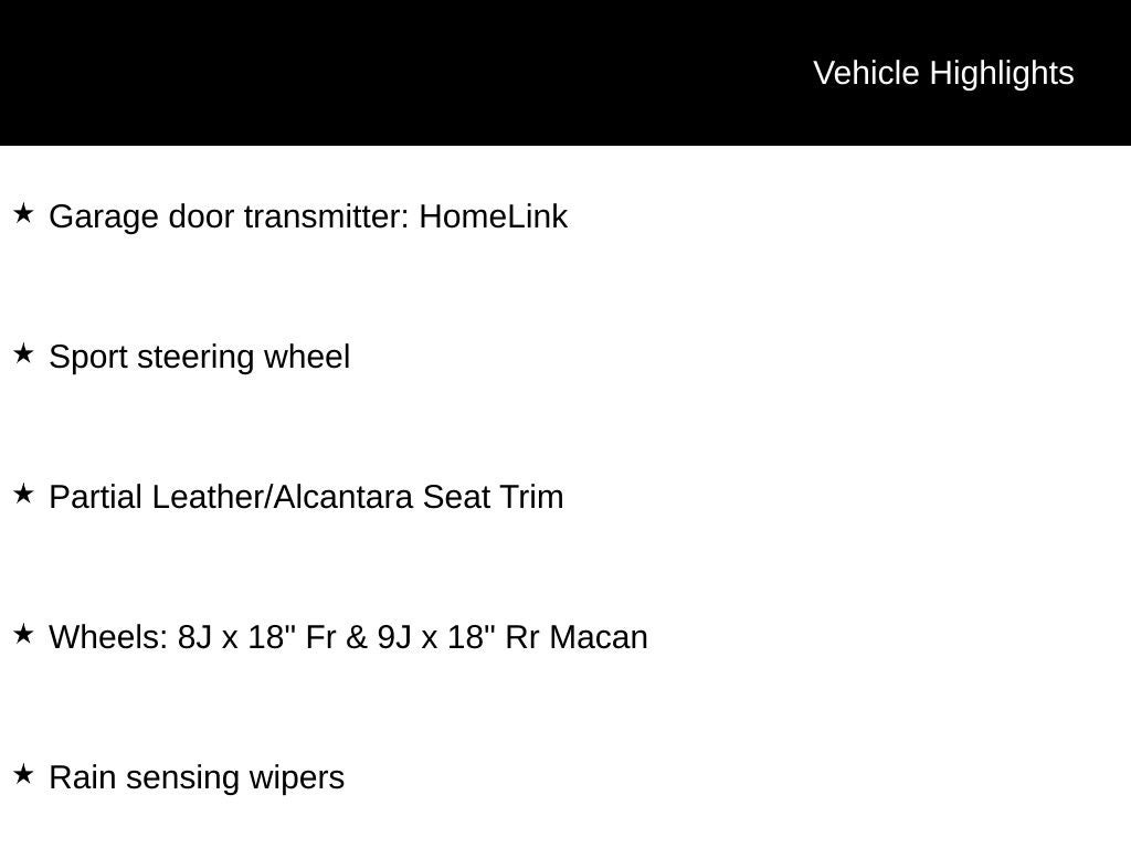The Macan's spacious and well-appointed interior is designed to cater to your every need. Dual-zone climate control, a premium sound system, and a wealth of advanced technology features ensure your comfort and convenience on every journey. The Partial Leather/Alcantara Seat Trim adds a touch of elegance and sophistication, while the power liftgate and ample cargo space make it easy to accommodate all your lifestyle needs.