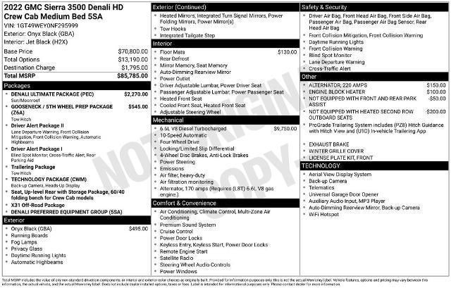 Experience the pinnacle of power and luxury with this 2022 GMC Sierra 3500HD Denali. This exceptional heavy-duty pickup is equipped with a Duramax 6.6L V8 Turbodiesel engine, delivering an impressive 445 horsepower and an astounding 910 lb-ft of torque, ensuring you can tackle any task with ease.