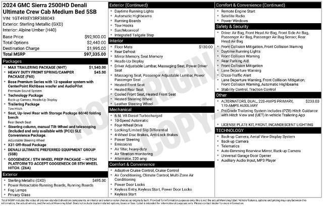 - Denali Ultimate Preferred Equipment Group includes standard equipment