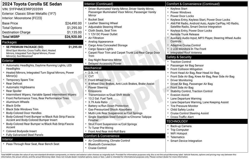 This 2024 Toyota Corolla SE is an exceptional value, offering a winning combination of style, technology, and efficiency. Experience the difference for yourself by scheduling a test drive at our showroom. We're confident you'll be impressed by this exceptional sedan.